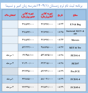 جدول ثبت نام ترم زمستان 1